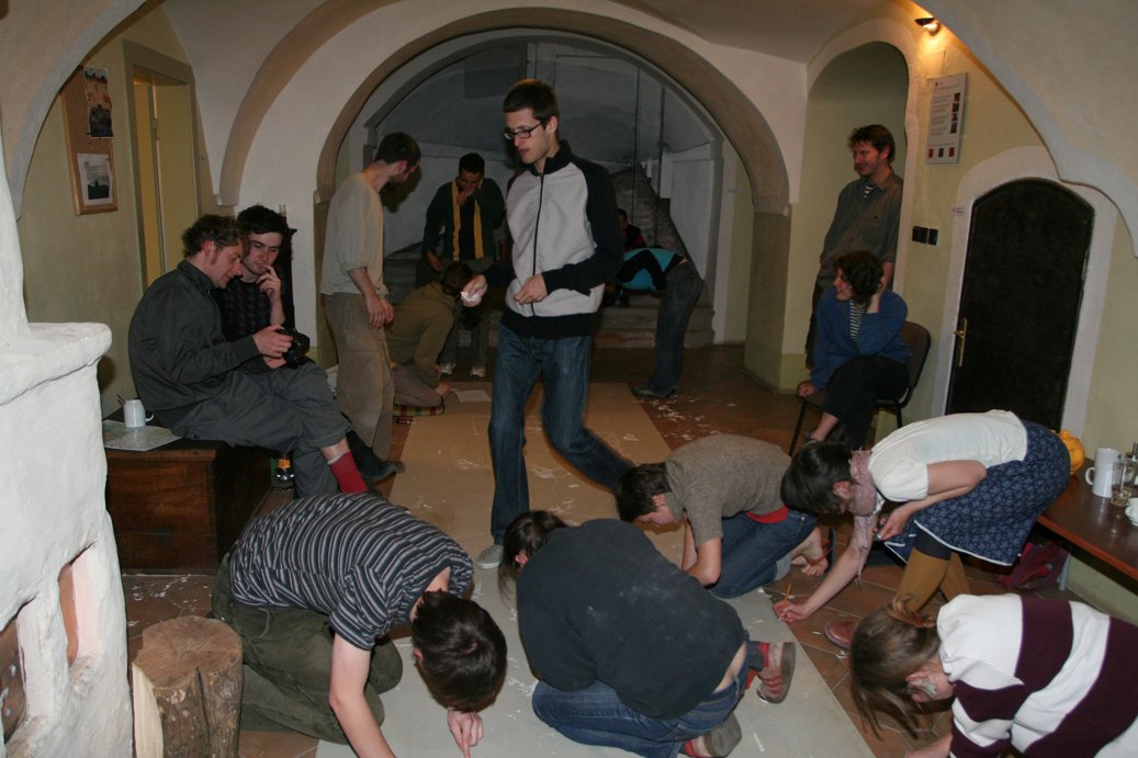 Študenti Vysokej školy výtvarných umení z Bratislavy a Vysoké školy uměleckoprumyslové z Prahy pracujúci v časovom rozpätí jedného týždňa na dvoch témach v jednom konkrétnom priestore - objekt domu na Akademickej 1 - Veličekovsko-Rustovský dom. Pod vedením odborných lektorov majú k dispozícii budovu ako pracovný materál, s ktorým, na ktorý a pre ktorý výtvárajú umeleckými technikami vlastné výstupy v podobe autorských kresieb, frotáží, linorezov, manipulovaných fotografií. Materiálom sú novodobé stavebné vrtstvy, omietky, dlážky, kovové a iné časti v priestoroch domu. Výber konkrétnych miest je konzultovaný s pracovníkmi Pamiatkového úradu v Banskej Štiavnici. Výstupy skupiny ilustrátorov následne finalizuje skupina grafických designérov, ktorá paralelne rieši grafickú stratégiu budúceho využitia objektu ako kultúrneho centra. Výsledkom spoločnej kooperácie je séria alternatívnych pohľadníc.